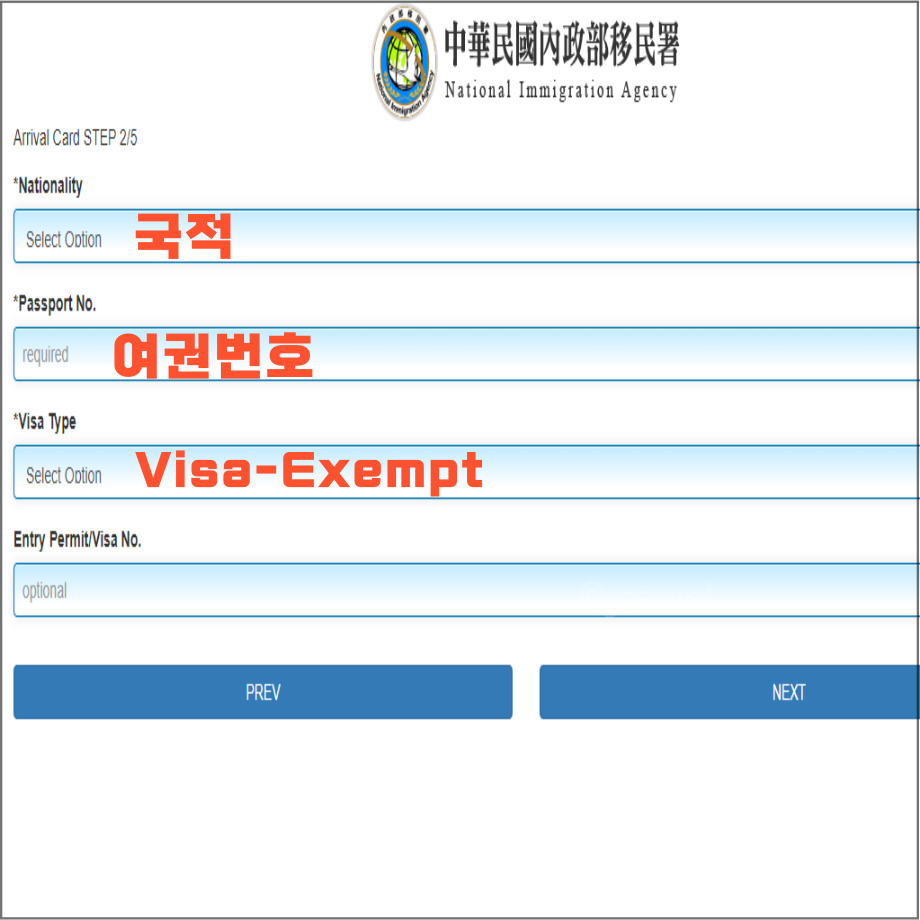 총 5페이지를 작성하는데 다음 2페이지에서는 차례대로 국적, 여권번호, 비자타입을 적어주시면 됩니다. 마지막은 선택이라 따로 안 적으셔도 됩니다.